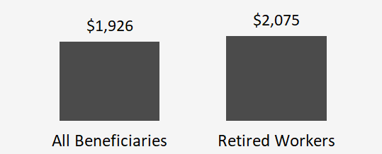 The SSA reports a new average Social Security payment every month. The average monthly check for all beneficiaries was $1,976 in January 2026, the most recent month for which data are available, as shown in the figure below. For retired workers, the average monthly check was $2,075. The amount for retired workers is higher because it does not include people on disability or survivor benefits, which tend to be lower than retirement benefits.